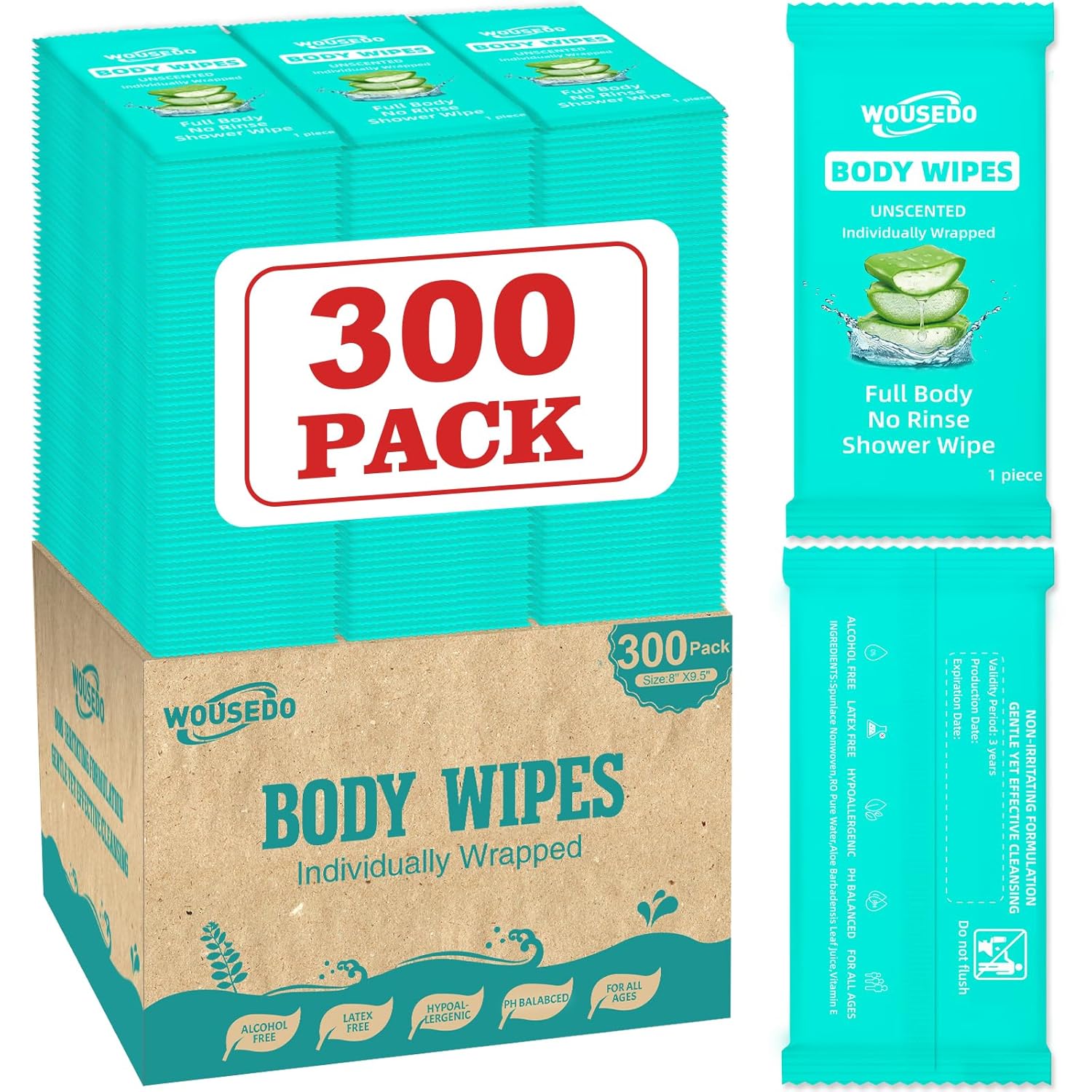 - Unscented Body Wipes:Free from alcohol, any artificial flavors or chemical additives.