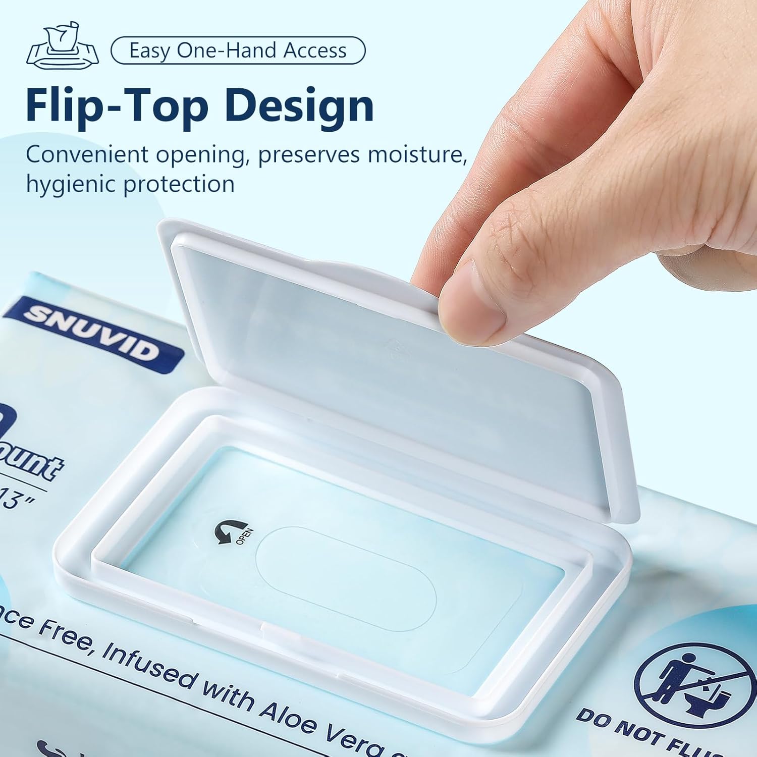 The convenient flip-cap design seals tightly to lock in moisture, prevents wipes from drying out, and allows for easy one-handed access—keeping every wipe fresh and ready whenever you need it.