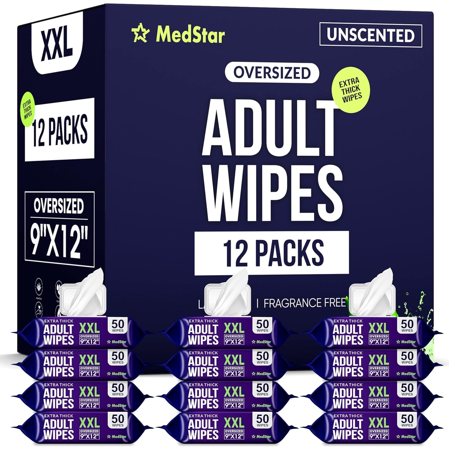 Adult Wipes for Elderly 8 Pack – Hospital Grade Extra Large Extra Thick Disposable Washcloths for Adult No-Rinse Bathing & Shower Alternative – Fragrance-Free XXL