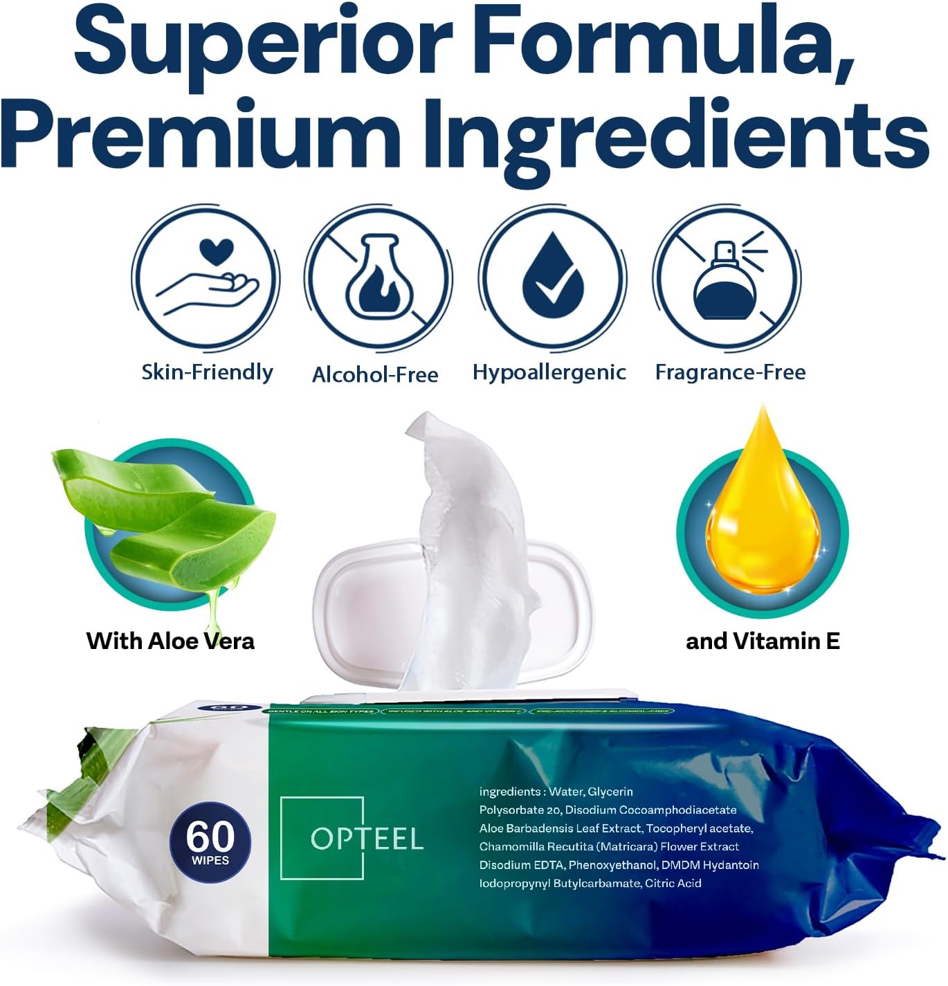 OPTEEL Adult Wipes For Elderly – 8″x13″ Extra Large & Soft Wet Wipes for Adults Bathing – Incontinence Disposable Washcloths, Vitamin E & Aloe Infused for Men & Women 720ct (12 Packs of 60)